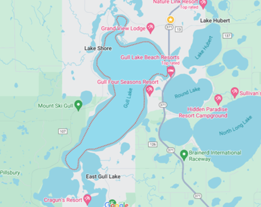Nestled in the heart of central Minnesota's Brainerd Lakes area, Gull Lake is a premier destination for outdoor enthusiasts and wakeboarding aficionados alike. Spanning 9,947 acres with a depth averaging 20 feet, Gull Lake's clear, spring-fed waters are surrounded by a picturesque landscape, making it an idyllic setting for water sports. The lake boasts an impressive 11.5 miles of shoreline, dotted with resorts, campgrounds, and vacation homes.